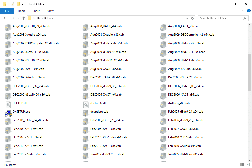 Відкрийте створену раніше папку, щоб знайти велику кількість файлів CAB, кілька файлів DLL та папку dxsetup.exe.